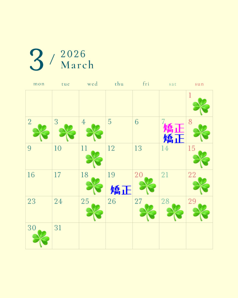 ☘️マークの日は休診日です。