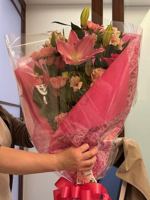 退職したAには花束と心ばかりの贈り物をプレゼントしました。