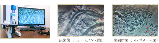 レントゲンには細菌は映りません。だからこそ細菌を発見することが出来る位相差顕微鏡検査は重要なのです。虫歯や歯周病は虫歯菌、歯周病菌が原因による感染症。患者さまの虫歯・歯周病リスクが高い奥歯から少量の汚れを取り、その場で瞬時に検査が可能です。もちろん痛みは全くありませんから安心です。