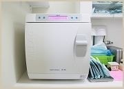 一般の歯科医院でよく使われている滅菌器との大きな違いは真空ポンプにより滅菌器の中に真空をつくることにあります。真空にする理由としては空気が残っていると気圧の違いで筒状の器具(歯科にはこの形の器具も多いのです)の内部に空気が残留してその部分が滅菌されないからなんです。実はあまり知られていませんが、滅菌に厳しいヨーロッパではこの真空タイプの滅菌器ではないと使用が禁止されています。